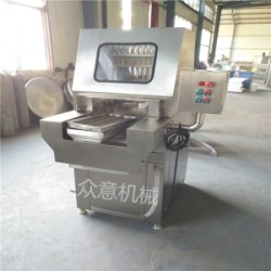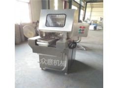 各種肉經過鹽水混合液注射均勻滲透,柔軟味美,還可根據需要適當增加出品率。盛眾鹽水注射機采用雙速電機為動力源,凸輪與搖臂配合,帶動針架上下傳動。當針架下降時,鹽水閥自動開啟,開始注射。當針架上升時,鹽水閥、自動關閉,注射的肉通過退料板退掉,同時輸送帶通過機械傳動前移。注射后的肉塊經輸送帶送入前方容器內。以此往復,循環工作。