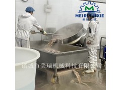 豬大腸鹵煮鍋 豬頭肉鹵煮鍋設備 蒸汽加熱夾層鍋內蒙古加工牛羊肉的會比較的多,除了可以出售鮮肉還可以出售煮熟的肉類的,煮熟的肉類然后經過了高溫殺菌處理以后的出售保質期還長更加方面的長時間的一個運輸狀態的,再然后煮肉的話就可以通過夾層鍋來實現煮熟的加工處理的,這個單獨的煮肉加工普通的夾層鍋不帶攪拌功能就可以實現的。