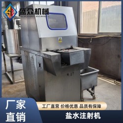 全自動(dòng)鹽水注射機(jī)它可將鹽水及輔料配制的腌制液注入肉塊中,再通過(guò)真空滾揉使料液充分腌漬,滲透,可疏松肌肉組織結(jié)構(gòu),有利于肌球蛋白溶出,并且由于添加劑對(duì)原料肉離子強(qiáng)度的增強(qiáng)作用和蛋白等特點(diǎn)的調(diào)整作用,注入配制的水溶液能使肉質(zhì)嫩化、松軟,從而提高了肉制品的出品率和改善肉制品的嫩度和口感。 可根據(jù)不同工藝要求,通過(guò)調(diào)節(jié)步進(jìn)速度、步進(jìn)距離、壓肉板間隙及注射壓力,將腌漬液定量、均勻、連續(xù)地注入產(chǎn)品中,從而實(shí)現(xiàn)產(chǎn)品的注射效果。