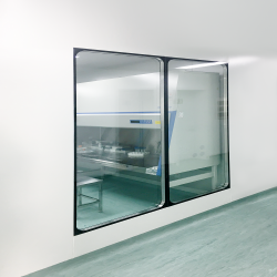 在實際使用中,窗體要滿足視覺及潔凈要求,具備良好的耐用性能和穩定表現,玻璃采用雙層中空鋼化玻璃設計,具備良好的抗沖擊性、隔音保溫性;彩鋼雕孔板本身結構堅固、抗壓強度高,具備良好的抗沖擊強度,能夠承受頻繁操作或外力沖擊而不易破碎,適應有空氣壓差環境下的穩定性要求。
