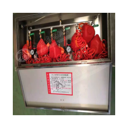 壓風(供水)自救裝置結構組成ZYJA)型礦井壓風(供水)自救裝置,本裝置一箱六組(可根據要求設計組別),能同時提供六人使用,達到互相照顧的效果。該裝置由箱體、安裝板、進氣管、進水管、凈水過濾器、門鎖、呼吸器(多組)、排水裝置(多組)等組成。箱體、安裝板、總進氣管、總進水管采用不銹鋼制造而成。該裝置中供氣系統采用自吸過濾式口罩直接帶在嘴上進行呼吸,同時可通過進氣球閥、調節閥雙重調節壓力,口罩通過彈簧軟管連接,彈簧軟管可自由伸縮,使用人員能在彈簧軟管可伸縮范圍內自由活動。該裝置的凈水過濾器濾芯采用目前流行的水質過濾先進工藝為核心進行裝配生產,PP棉濾芯、顆粒活性炭濾芯、壓縮活性炭濾芯、**過濾器過濾膜后置活性炭過濾工藝。能夠對各類雜質、鐵銹、淤泥、膠狀物、懸浮物、有機物、余氯及其他物質進行多次過濾,并能對細菌、異色異味物質、細小污染物、吸附有物質進行有效去除,大大改善了凈化水的水質,水質甘甜可口。